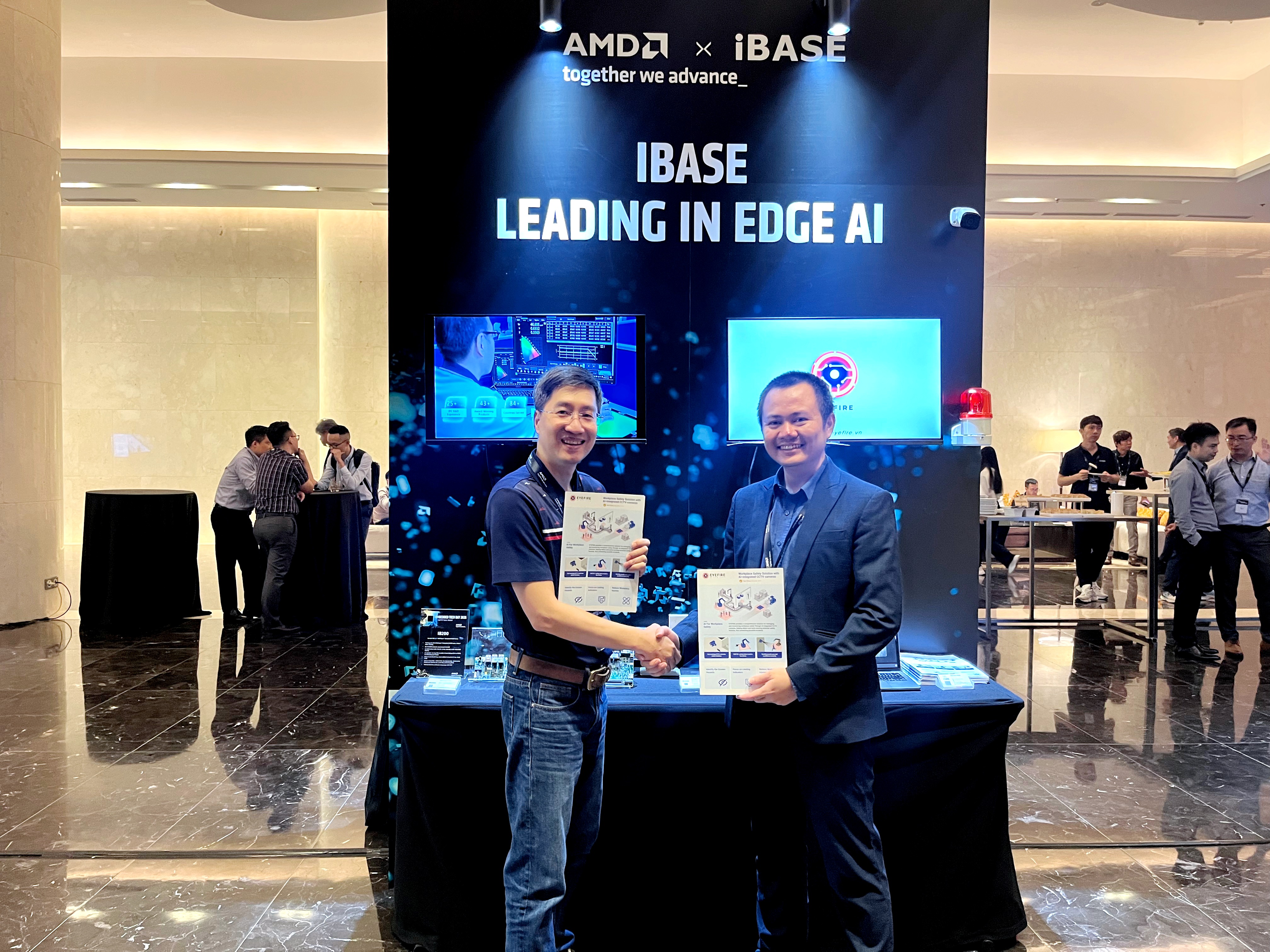 EYEFIREとiBASE Technologyはパートナーシップを締結し、EYEFIREのAI VisionソフトウェアプラットフォームとiBASEのエッジデバイス(Edge-Device)ハードウェアを統合した、企業向けの包括的なAIoTソリューションを実現しました。 エッジAIへの戦略的転換 デジタルトランスフォーメーション(DX)の時代において、人工知能(AI)とモノのインターネット(IoT)が融合した「AIoT」は、企業運営の新たな柱となっています。現在、業界ではクラウドコンピューティングへの全面的な依存から脱却し、エッジAIへと大きく舵を切る動きが加速しています。 本イベントは、進化を続ける組み込みコンピューティングとエッジAI分野のインサイトを交換する貴重な交流の場となります。 エッジAIでスマートな運営を実現:EYEFIREとiBASEの共同ソリューション 現場のデバイスでデータを直接処理することにより、遅延(レイテンシ)を最小限に抑え、セキュリティを強化し、ネットワーク接続が不安定な環境でもシステムの安定性を確保できます。これらの重要な運用ニーズに応えることが、EYEFIREとiBASE Technologyのパートナーシップの核心です。 既存システムの「AI化」:EYEFIREによるブレイクスルー これまで、インフラ刷新に伴う多大なコストは、企業がAIを導入する際の大きな障壁となってきました。EYEFIREは、柔軟なVision AIおよびSafety AIソリューションを通じてこの課題を解決します。 次世代エッジAI:iBASE × EYEFIREが提供する超低遅延のデータインテリジェンス EYEFIREの技術的特徴は、既存のIPカメラシステムをインテリジェントなAIカメラへと変貌させる能力にあります。画像やビデオデータをリアルタイムで解析し、対象物、行動、異常を自動的に認識します。これにより、企業は既存のカメラインフラを大幅に変更することなく、スマートアプリケーションを迅速に導入でき、設備投資(CAPEX)を劇的に最適化することが可能です。 EYEFIRE Safety:職場の安全管理をスマート化するリアルタイム危険検知・警報システム iBASEのインフラ:産業用途を支える屋台骨 AIソフトウェアがその潜在能力を最大限に発揮するためには、耐障害性に優れたハードウェアが不可欠です。iBASEのエッジデバイスは、過酷な産業環境向けに専用設計されており、強力な処理能力と24時間365日の連続稼働を保証します。 EYEFIRE Safetyが既存のIPカメラを高度なAIセンサーに変貌させ、現場の安全を可視化。 EYEFIREの人工知能とiBASEの高性能ハードウェアの統合は、完全なエッジAIアーキテクチャを構築します。このモデルでは、AIアルゴリズムを発生源(現場)で直接実行できるため、生産監視、労働安全管理、スマートファクトリーの運営において最大限の柔軟性を提供します。 Embedded Tech Day 2026における確かな実績 この共同ソリューションの実用性は、2026年3月14日にハノイで開催されたAMD主催の「Embedded Tech Day 2026」にて実証されました。EYEFIREとiBASEの共同展示ブースでは、多くのパートナーや来場者が、現実のシナリオにおけるVision AIとSafety AIのライブデモンストレーションを直接体験しました。 AIカメラへのアップグレードをリアルタイムで実証:パートナーによる体験と検証 EYEFIRE Safety:リアルタイム脅威検知の圧倒的なパフォーマンスを体験する来場者たち 特に、カメラ映像を解析して職場の潜在的な危険を検知し、即座にアラートを発する機能は、来場者に強い感銘を与えました。AMDのテクノロジーエコシステム内におけるEYEFIREとiBASEのプレゼンスは、本ソリューションの広大な可能性を浮き彫りにしただけでなく、グローバル市場における実用的なエッジAIアプリケーションのリーディングプロバイダーとしての評価を確固たるものにしました。